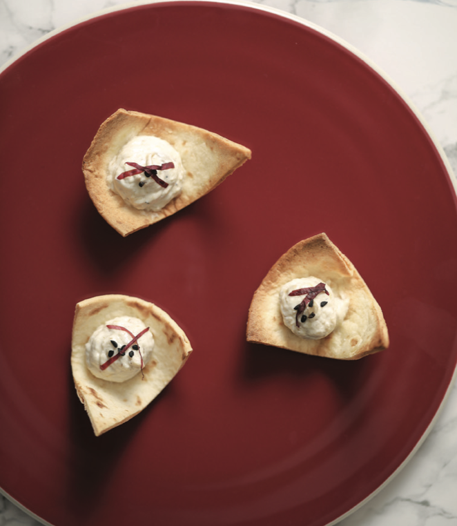 Herbes aromatiques aux œufs, épines-vinettes et noix.