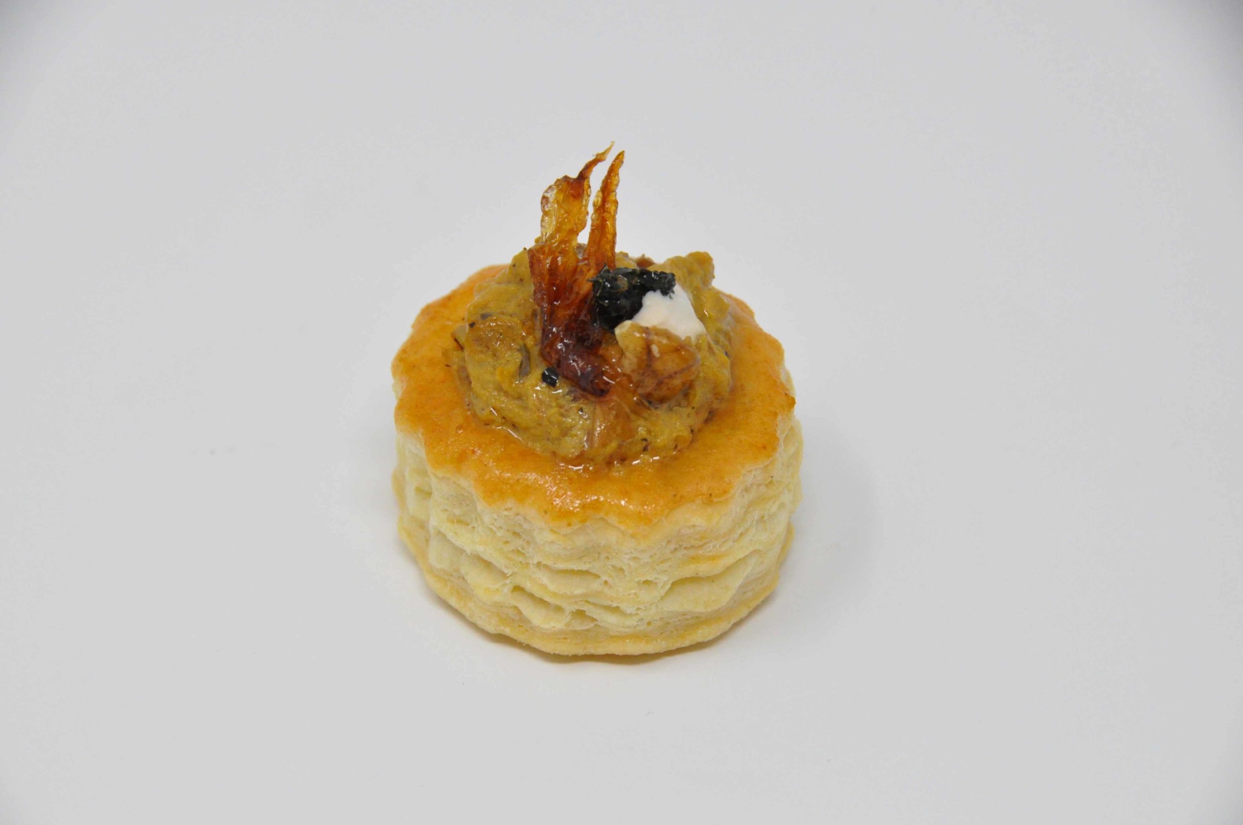 aubergine, lait caillé, safran, oignon caramélisé, menthe caramélisée, ail pâte croustade