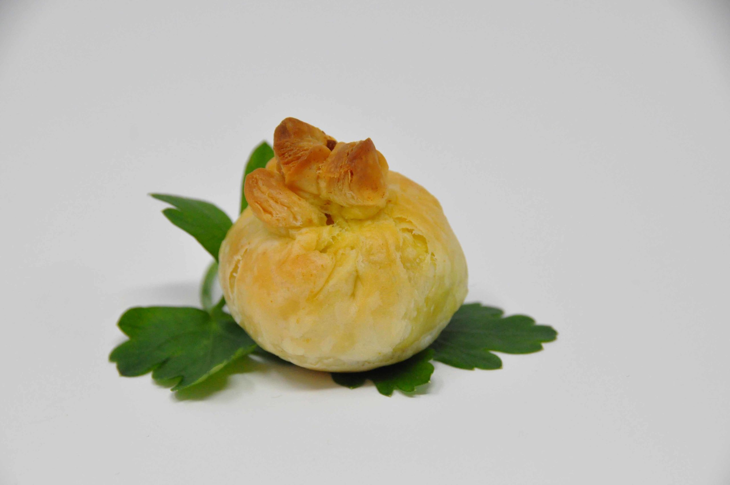 pomme de terre, oignon caramélisé, pâte croustade, persil