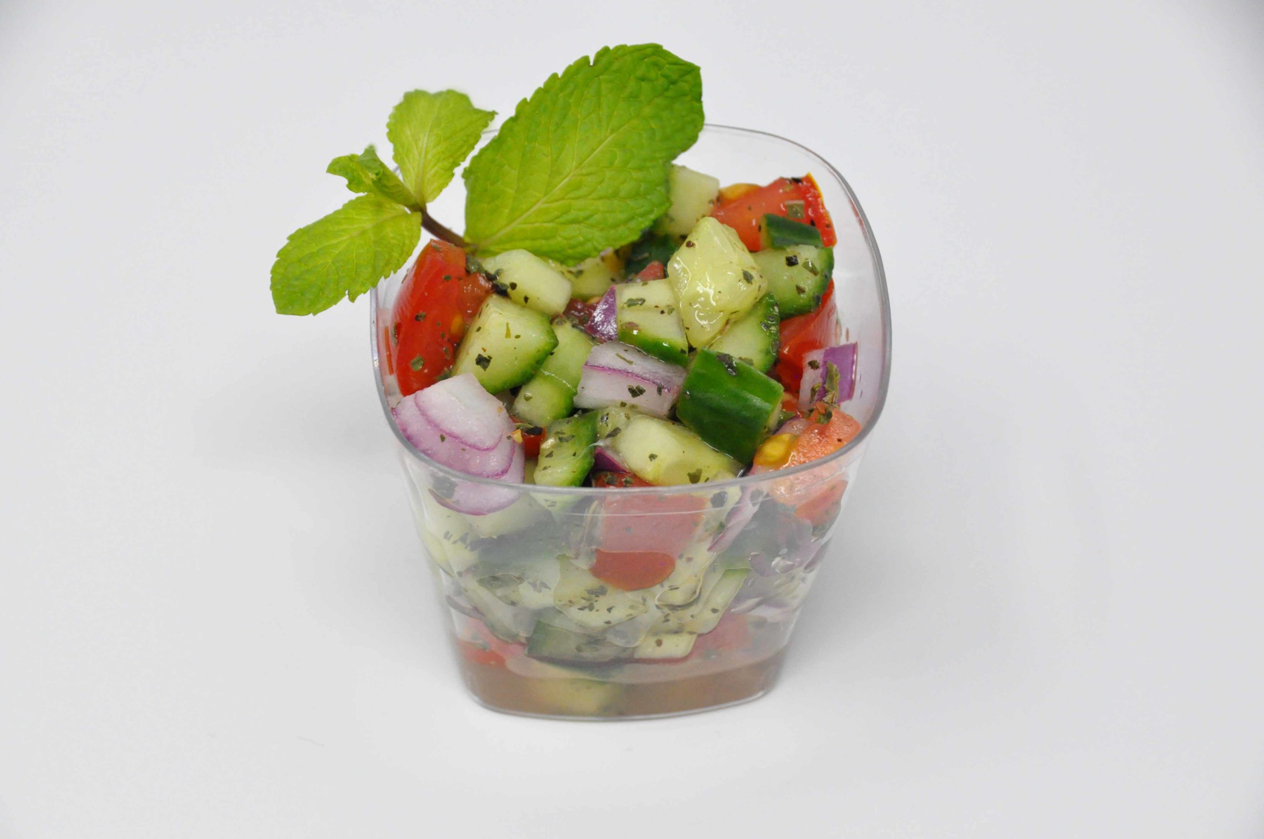 La salade Shirazi est une salade iranienne traditionnelle très populaire qui tient son origine de Shiraz, la ville du sud de l’Iran, célèbre pour ses magnifiques jardins, sa poésie et son vin. Le goût frais des tomates, du concombre, de la menthe et du jus de citron est très rafraîchissant pendant les journées chaudes et sèches de l’été dans cette partie du pays.
